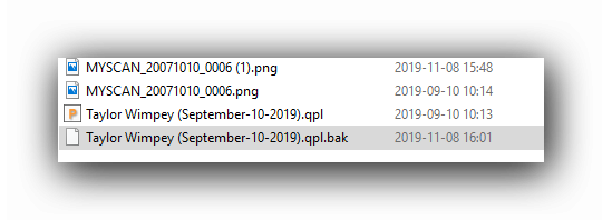 When a backup copy is retrieved, the .qpl.bak is automatically renamed as a .qpl.last file ant the cycle starts over.