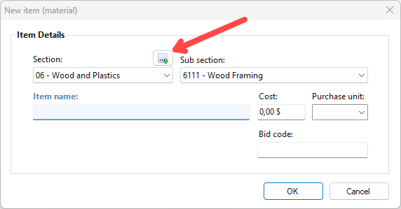 When a new estimatiing item is being created, a button will appear near the section selection menu. :