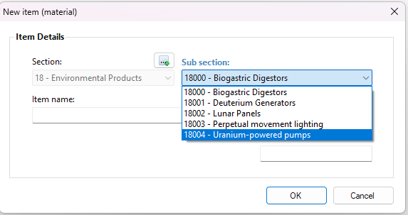 When a new estimatiing item is being created, a button will appear near the section selection menu. :